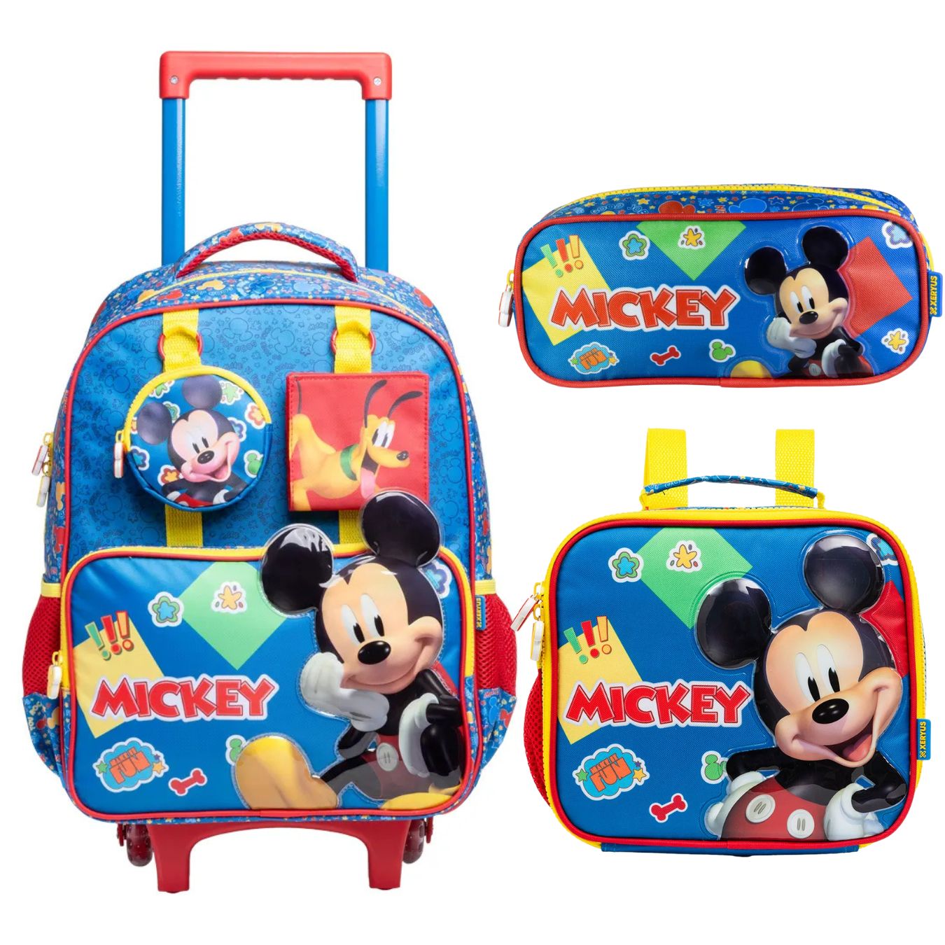 A mochila com rodas do Mickey é uma excelente opção para carregar os materiais do seu filho para escola. Inspirada em uns dos desenhos animados mais conhecidos do momento, a mochila conta com um compartimento principal, bolso frontal, bolsinhas removíveis que podem utilizadas como bolsos extras e dois bolsos laterais para garrafas. Os pequenos vão amar ir pra escola com essa mochila lindíssima.