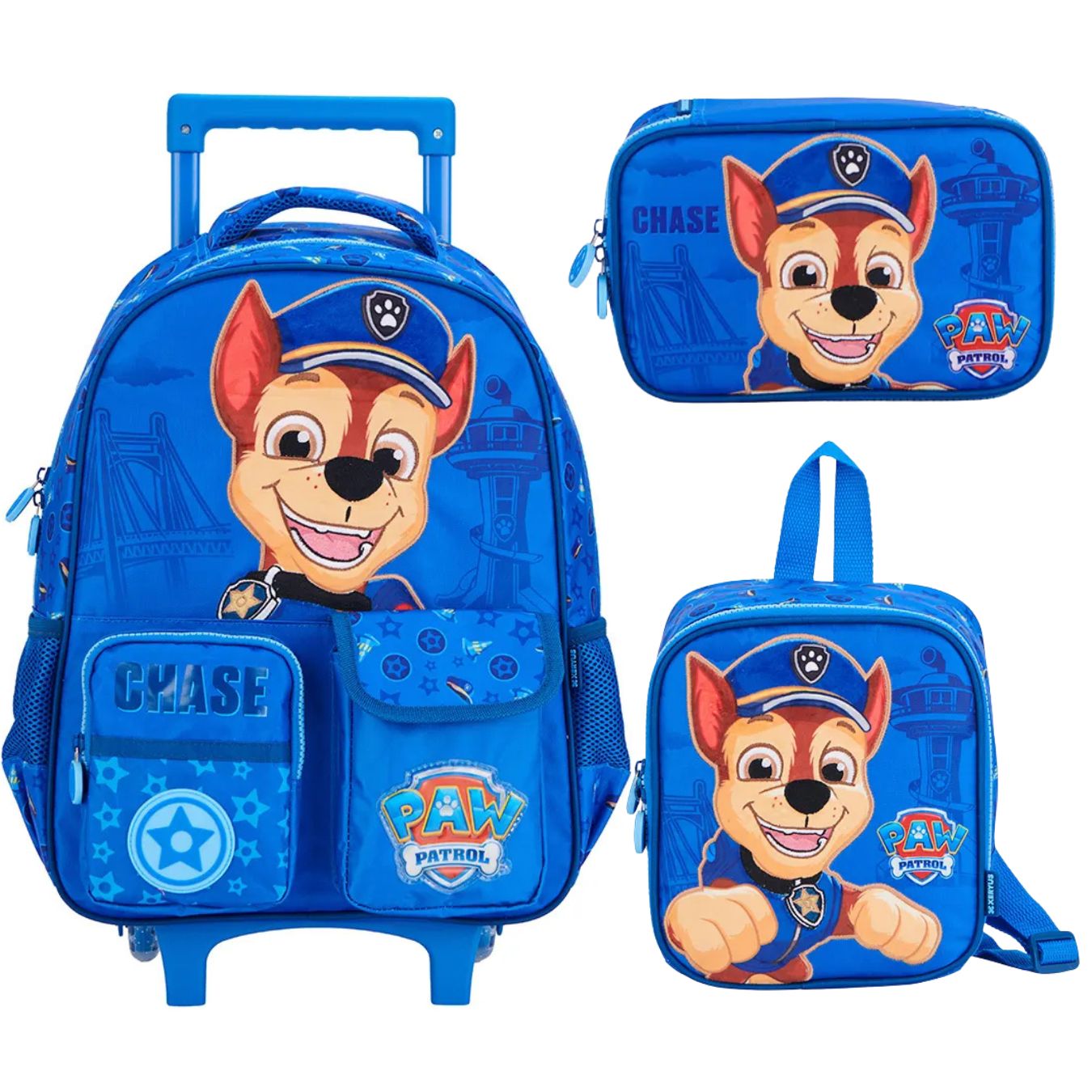 A mochila com rodas da Patrulha Canina é uma excelente opção para carregar os materiais do seu filho para escola. Inspirada em uns dos desenhos animados mais conhecidos do momento, a mochila conta com um compartimento principal, bolso frontal com zíper e outro com velcro e dois bolsos laterais para garrafas. Os pequenos vão amar ir pra escola com essa mochila lindíssima.