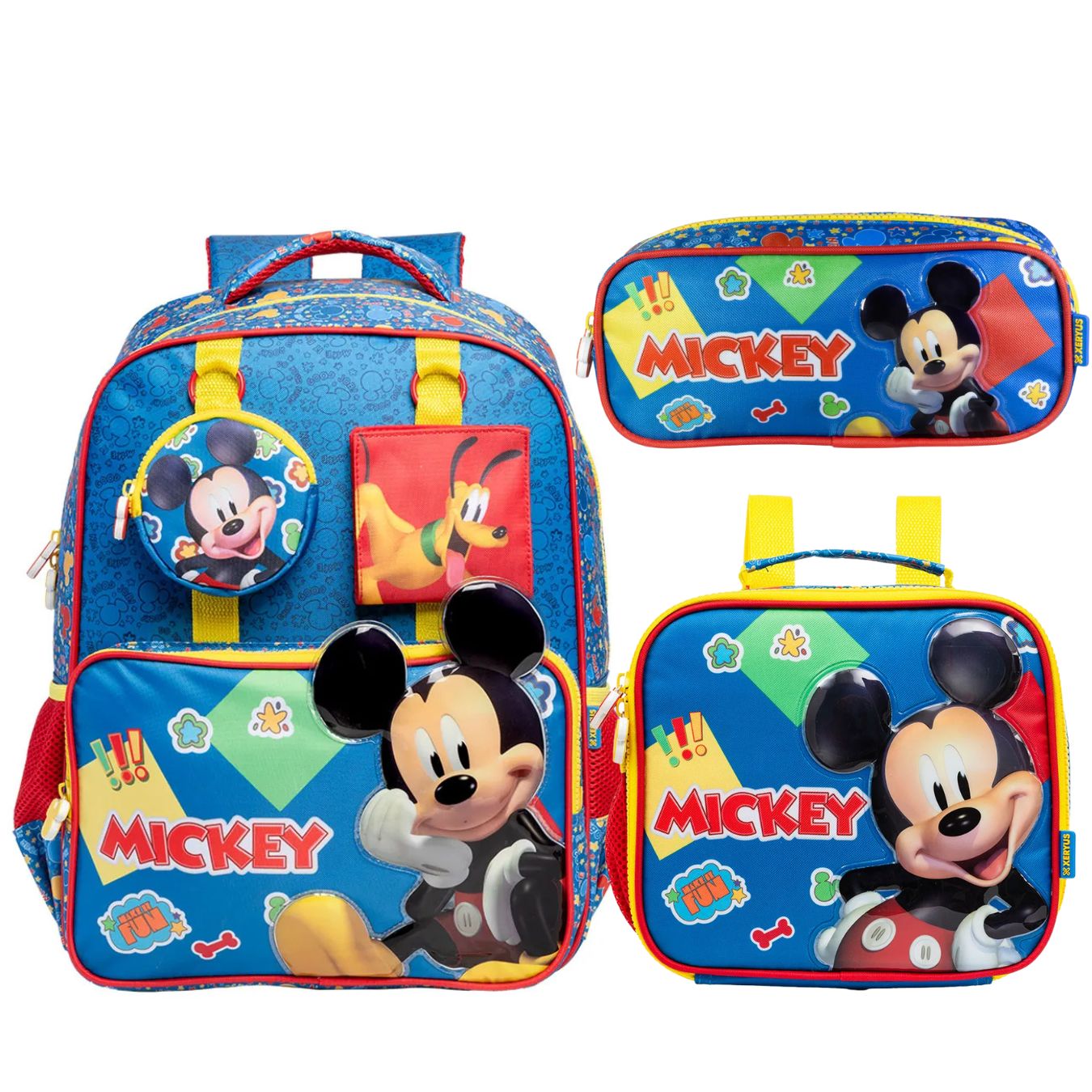 A mochila escolar do Mickey é uma excelente opção para carregar os materiais do seu filho para escola. Inspirada em uns dos desenhos animados mais fofos que ja teve, a mochila conta com um compartimento principal, bolso frontal, bolsinhas removíveis que podem ser utilizadas como bolsos extras e dois bolsos laterais para garrafas. Os pequenos vão amar ir pra escola com essa mochila lindíssima.